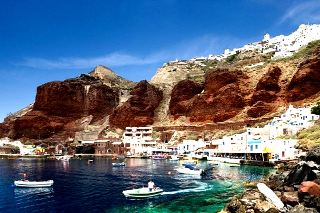 3500年前,希腊的火山爆发,岩浆沉淀形成了圣托里尼岛。白色农舍坐落在悬崖边,俯瞰蓝色火山口。无论是远眺或是俯瞰,圣托里尼岛依旧是美轮美奂。