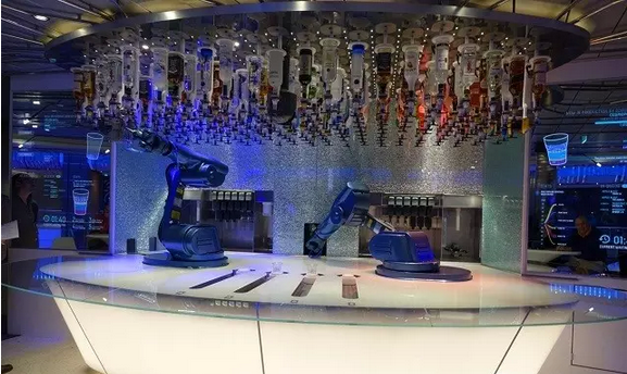 去年出现在邮轮上的机器人是海洋量子号上的机器人调酒师,一时引起广泛关注。