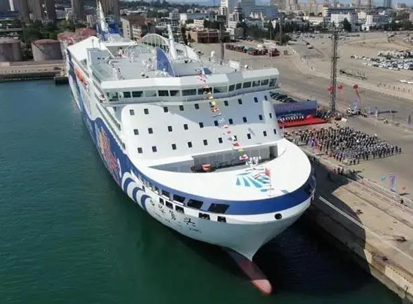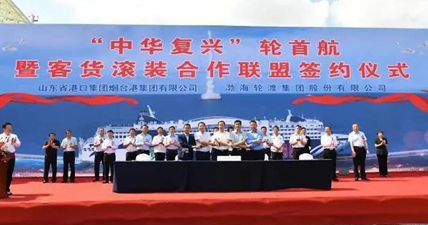 9月25日,“中华复兴”轮首航暨客货滚装合作联盟签约仪式山东港口烟台港客运站码头隆重举行,标志亚洲最大、最先进、最安全、最豪华、装载能力最强、智能化水平最高、设备最节能环保的邮轮型客滚船——“中华复兴”轮正式投入烟台至大连航线营运。