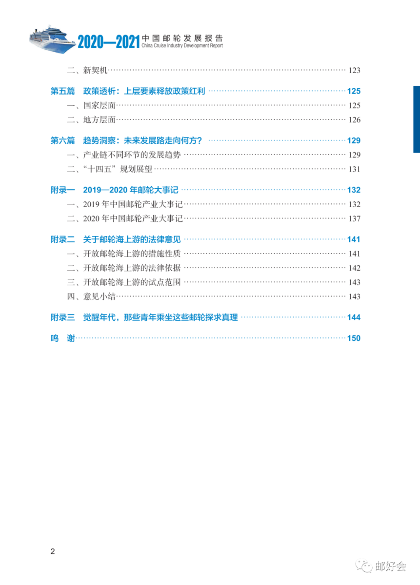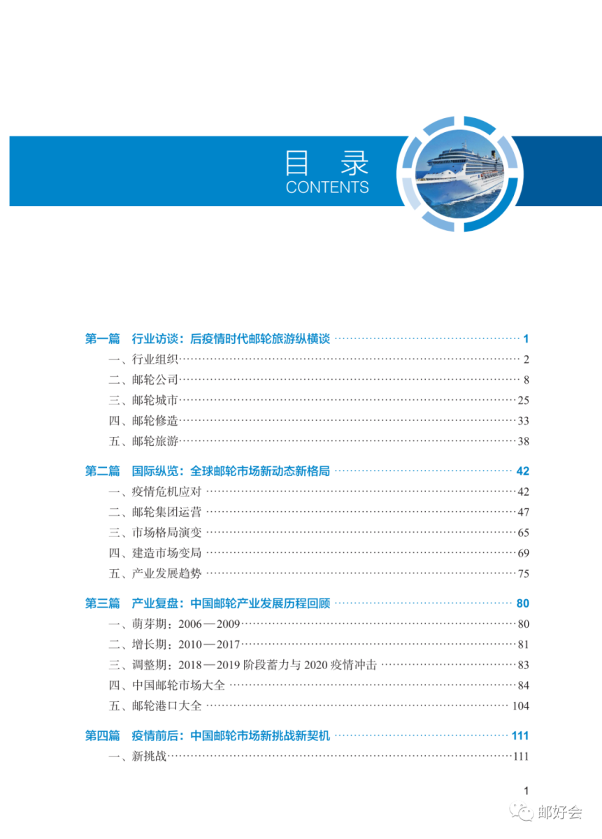 本期邮轮报告包括行业访谈、国际纵览、产业复盘、疫情前后、政策透析和趋势洞察共6大板块,重点落位业内专家思考、国际格局研判和国内趋势洞察的分析,精炼“按下邮轮产业暂停键、中资邮轮船队快速扩张、邮轮“内循环”复航推进、国造邮轮建造稳步推进”四大热点,并展望了十四五期间我国邮轮的发展趋势。