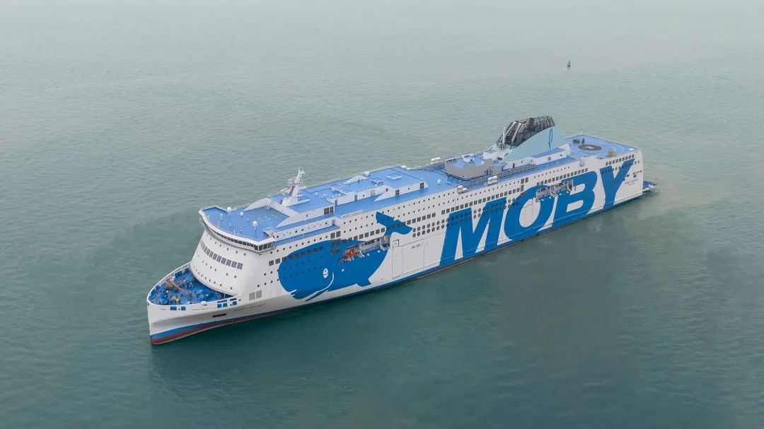12月19日,由中国船舶集团广船国际为意大利MOBY Line航运公司建造的2500客/3800米车道豪华客滚船2号船“MOBY LEGACY(莫比·雷格斯)”号轮在广州南沙龙穴岛启航。这艘船超过70000总吨,是目前建成的全球最大吨位的豪华客滚船之一,交付后将在地中海沿岸的意大利热那亚、奥尔比亚以及里窝那之间的航线运营。
