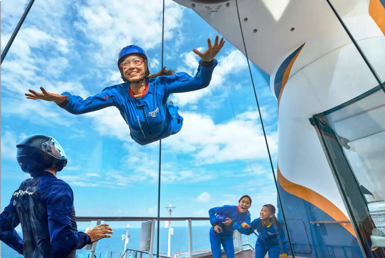 随着旅游业的复苏,年轻消费者也展现出强烈的旅游热情,年轻化趋势同样体现在了游轮消费选择中。根据皇家加勒比的预订数据显示, 2024年航次预订的客人平均年龄与2019年同期相比,降低了2.6岁,25-55岁预订客人的占比增长了20%,有越来越多的X世代和千禧一代正准备开启人生中首个游轮假期。相比于其他年龄段的消费者,年轻一代游客更加注重个性化和多样化的旅行体验,能够满足其需求的产品才能够赢得 “新势力” 的青睐。优质供给牵引需求,国际巨轮 “海洋光谱号” 被业界称为 “2024年最潮玩的海上度假胜地” ,提供多达30多种娱乐活动,既有如甲板跳伞,甲板冲浪、海上碰碰车、海上攀岩等肾上腺素飙升的运动项目,也有多元化的大秀演出、音乐派对、社交活动以及舒适的住宿体验、丰富的餐饮选择,与年轻一代游客的兴趣和偏好高度契合。
