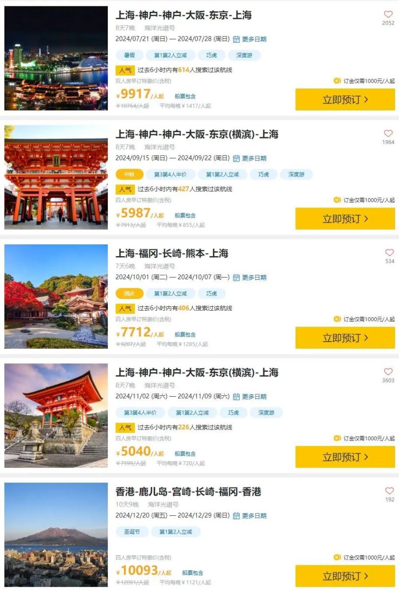 过去,与欧美成熟游轮市场相比,中国游轮消费者提前预订的窗口短,一般在行前三个月之内开始规划游轮假期,预订高峰在行前一个月内。经历过三年疫情后,消费者积压的出游需求得到了释放,对优质游轮度假产品更加追捧,更加积极主动地提前规划未来的游轮度假行程。从皇家加勒比预订数据看,预订窗口期从行前三个月拉长到行前一年,甚至有人早已预订2024年底和2025年初出发的皇家加勒比航线,一方面提前预订可以享受游轮公司提供的早鸟优惠以及折扣,另一方面说明中国游轮市场开始走向成熟,预订行为发生深刻的变化。预订窗口期的延长有利于游轮市场的健康和有序,价格低开高走,避免价格在航次出发前跳水。
