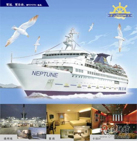 “海王星号”是现时香港最具规模,设施最先进完善的五星级豪华邮轮。船高九层,长 156.26米 ,宽 21.8米 ,高 37.8米 , 排水量 16,000吨,总载客量达500人,集博彩、娱乐、休闲等多种设施,是一间设备齐全,服务一流的海上五星级酒店。