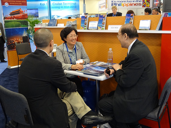 2013年世界邮轮博览会于近期开幕,展期三天,属于专业型的展会,不向公众开放。来自全球的政府部门、旅游部门、港口部门、邮轮旅行商、世界邮轮及其设备制造商和酒店产品供应商等4万多名业界代表参加此次展会。中国展区由国家旅游局驻纽约办事处牵头组织,天津、上海、广州、海南、深圳、厦门和青岛七个省市参展。展会期间,厦门展台以图片、画册以及播放光碟等形式,生动地展现了厦门邮轮母港的旅游环境和区位优势,其中“我的厦门——市长带你游”专题宣传片吸引了众多邮轮专业人士的顿足和兴趣,纷纷前来展台详细询问情况。厦门参访团与美国皇家加勒比邮轮公司、美国嘉年华邮轮公司、维多利亚旅游船集团、意大利歌诗达邮轮公司等邮轮旅游业界人士进行深入交流与洽谈,国桂荣副市长热情向外商介绍了厦门的整体概况及邮轮发展情况,各方对厦门作为国际邮轮母港多点停靠联合促销的新模式表示认同,国副市长口头邀请了美洲邮轮业者到厦门考察邮轮产品,共同开拓邮轮旅游市场,不少业界人士当即表示出对厦门邮轮旅游市场的浓厚兴趣。