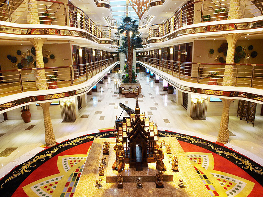 长江黄金邮轮犹如一座移动的水上城市,完美集合了“吃、住、行、游、购、娱”六大旅游要素,全方位满足游客旅途中的各种需求,实现了由过去的“坐船去看景”向“坐船去享受”的革命性转变。为更好地保障其邮轮的豪华性和游客的舒适性,长江黄金邮轮共享空间达到6000平方米以上,占全船甲板面积的三分之一,是世界内河邮轮中公区面积最大的邮轮,更适宜旅游观光、休闲度假和高端商务、政务接待。直升机停机坪、大型影剧院兼同声传译会议厅都是长江黄金邮轮的首创,除此之外,邮轮上还设有模拟驾驶室、儿童乐园、迷你高尔夫、环形赛车道、棋牌室、KTV、5D影院等70多项功能元素。特别是800多平米的商业步行街是黄金邮轮的最大亮点之一,也是长江邮轮船体结构上的一项颠覆性设计,名牌服装店、特产超市、甜品屋、咖啡吧等应有尽有,在这里,您一边可以欣赏到三峡沿岸秀美的自然风光,另一边则可以感受到一派浓郁的现代都市情调。